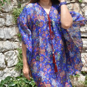 Kaftan Style Tunic – Silk Chiffon Peacock Print