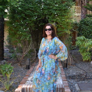 Printed Chiffon Dress (with belt) – Turquoise blue