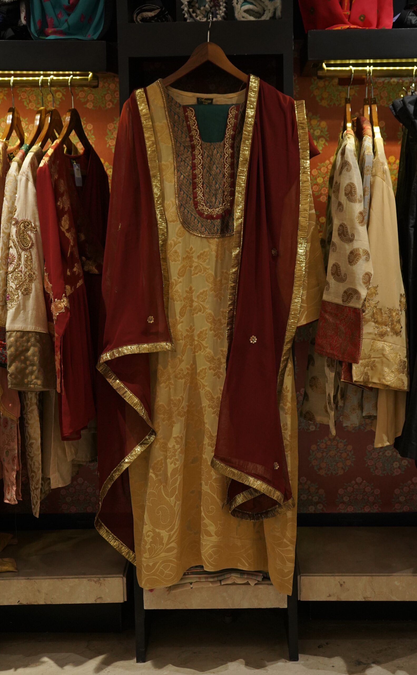 Be the first to review “Banarsi Palazzo Suit Set – Beige Gold”