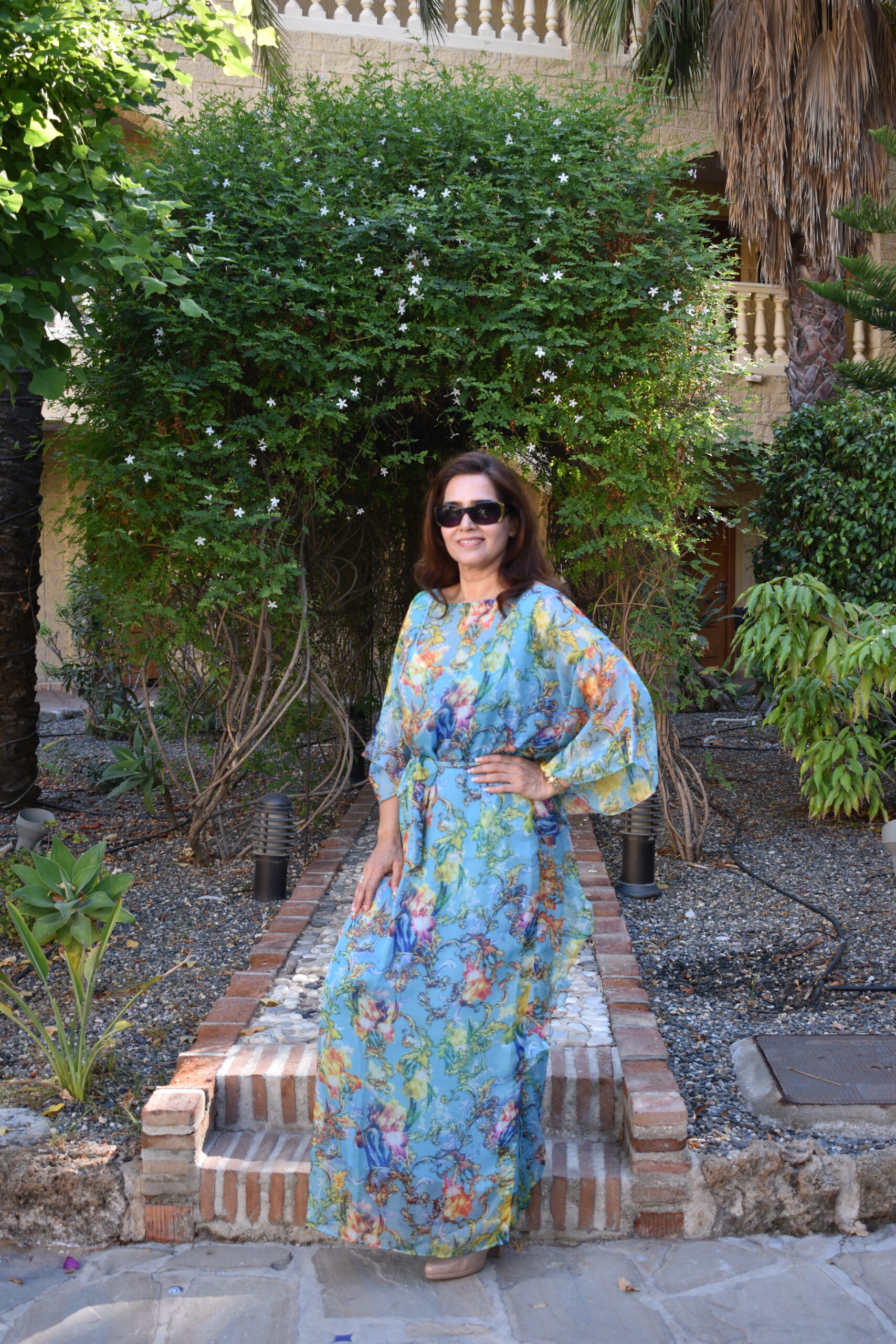 Printed Chiffon Dress (with belt) – Turquoise blue